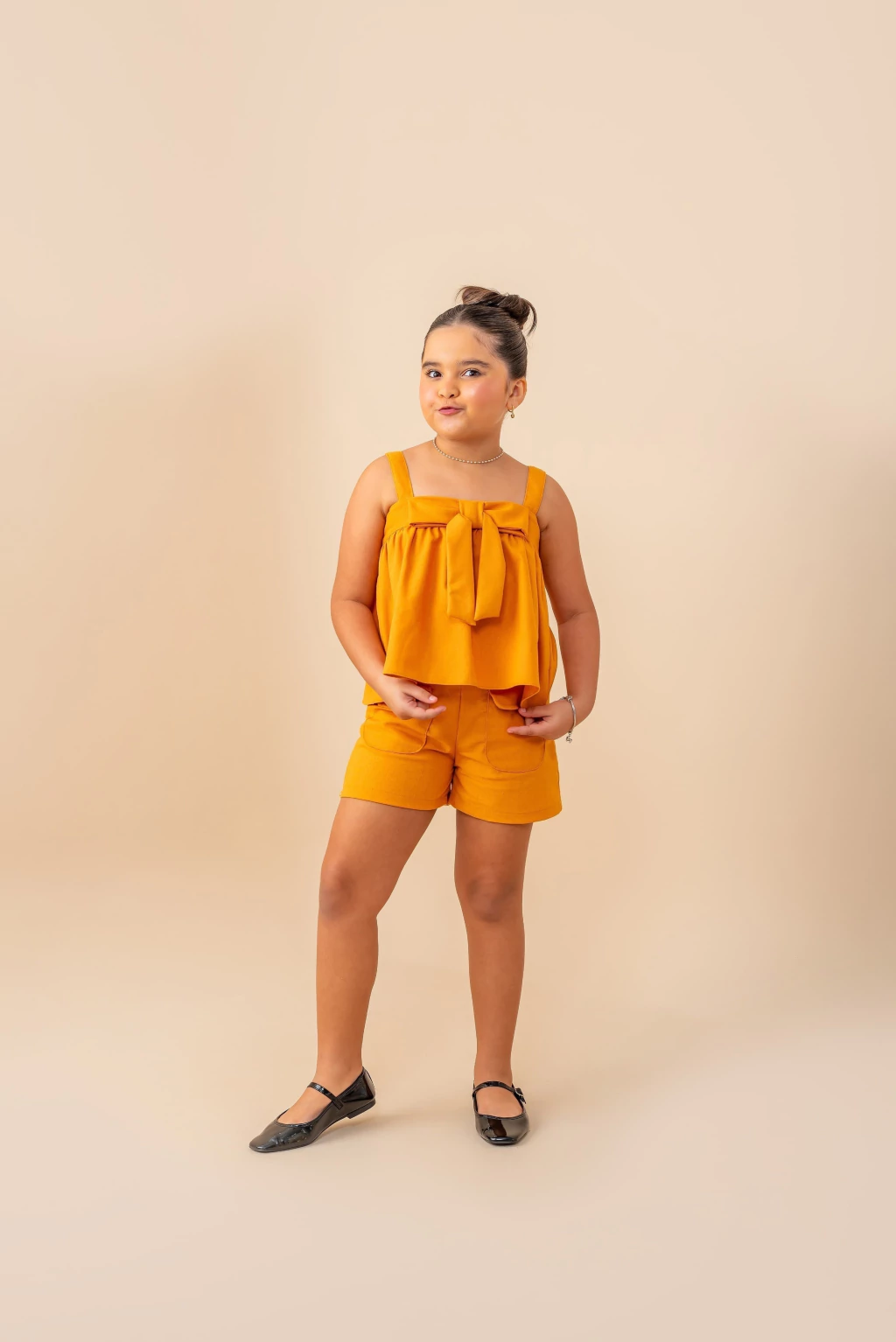 Encante-se com o nosso Conjunto Laço, uma combinação perfeita de estilo e conforto para as pequenas fashionistas. Confeccionado em tecido linho panamá de alta qualidade, composto por 55% algodão, 30% viscose e 15% linho, este conjunto é leve e ideal para o calor. A blusa destaca-se pelo laço na frente e um fechamento com botões nas costas, garantindo um ajuste perfeito e um toque de charme. O short possui dois bolsos funcionais frontais, unindo praticidade e estilo.