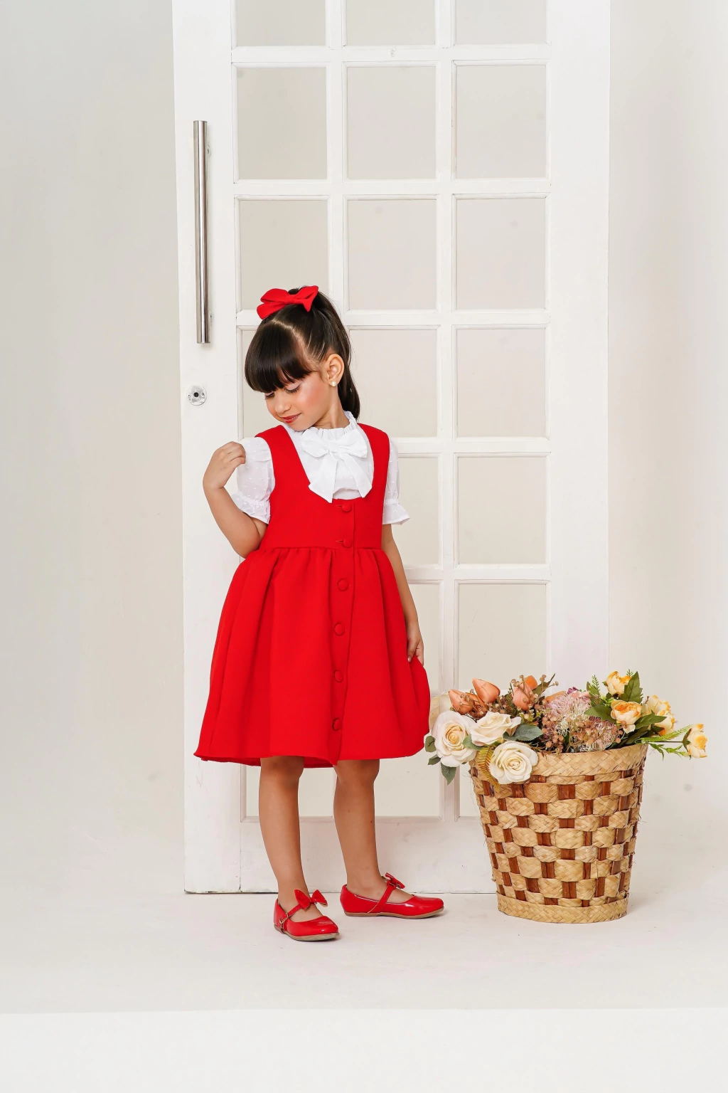 Encante-se com a Salopete Isadora, feita em linho rústico com um fechamento delicado com botões na frente e uma saia rodadinha, este modelo combina conforto e estilo de maneira única. Acompanha o laço de cabelo no mesmo tecido da salopete e uma batinha branca em tecido 100% algodão, repleta de detalhes charmosos e com fechamento em botão nas costas.